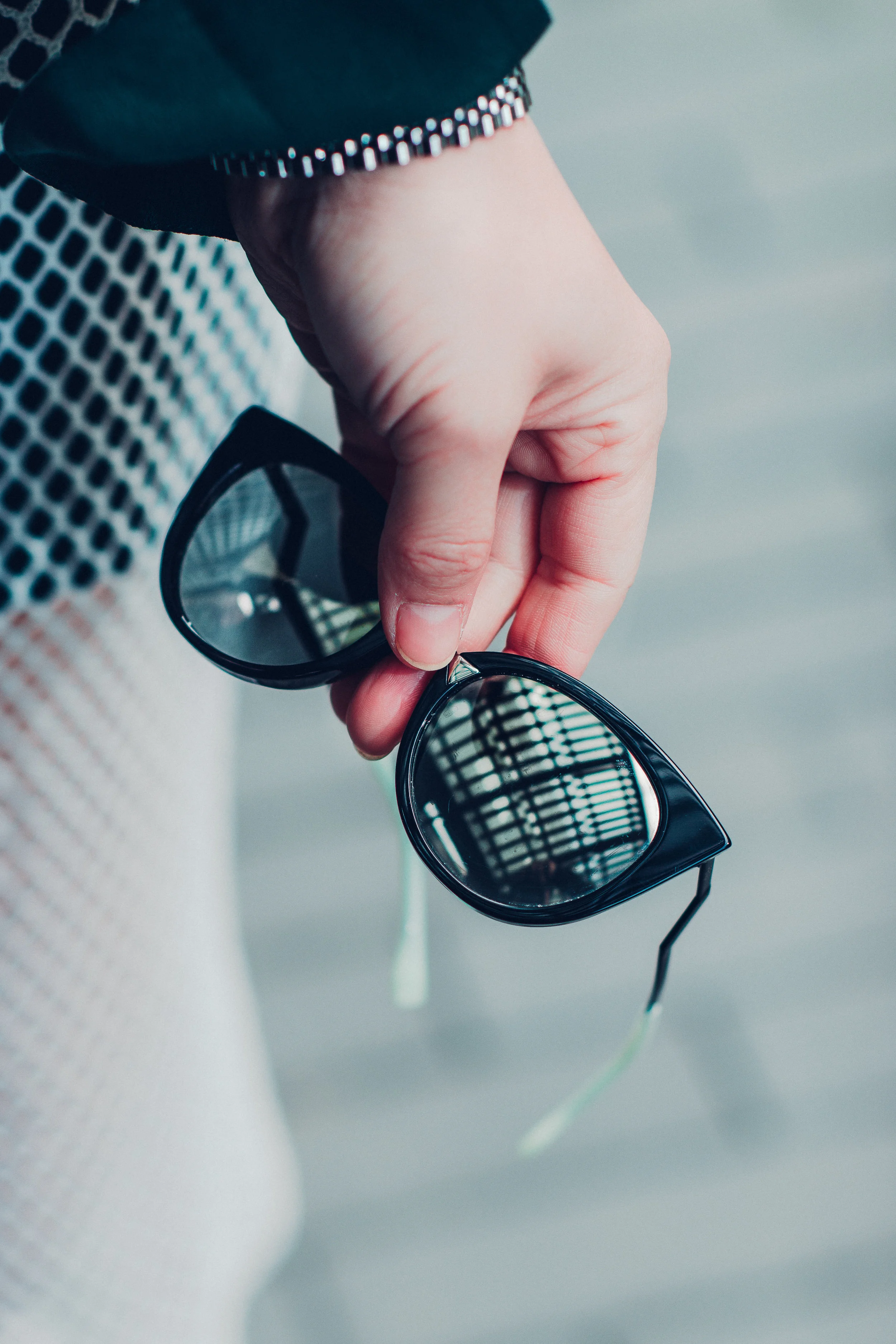 Top: Chloe scarf detail blouse.Skirt: Michelle Mason pencil skirt.Sunglasses: Fendi ORCHIDEA Cat eye sunglasses.Bag: Chanel Le Boy Medium bag, or order from NordstromShoe: Taconeando tango shoeWatch: Rolex lady-datejust 28 watch
