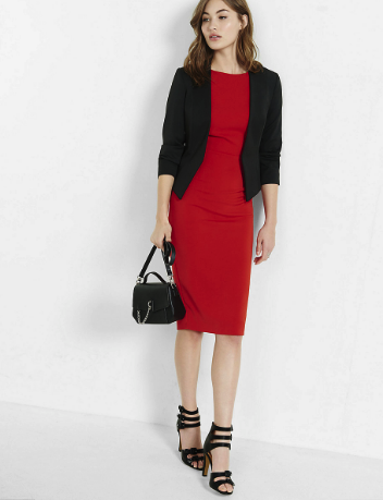 Nicole Miller Crystal-Print Sheath Dress, Express Jacket {Similar Here & Here}, Jc Collection Open Toe Pump {Similar here}, 3.1 Philip Lim Soleil Mini Textured-leather Shoulder Bag {Similar here }, Maxmara Black Collar Necklace, Marco Bicego Blue Lopez Earring {Similar here }, Su wood cuff {Similiar Here}Photo shoot location: Black Rock Coffee BarPhotographer: Andrew Mesa @AMP Photography